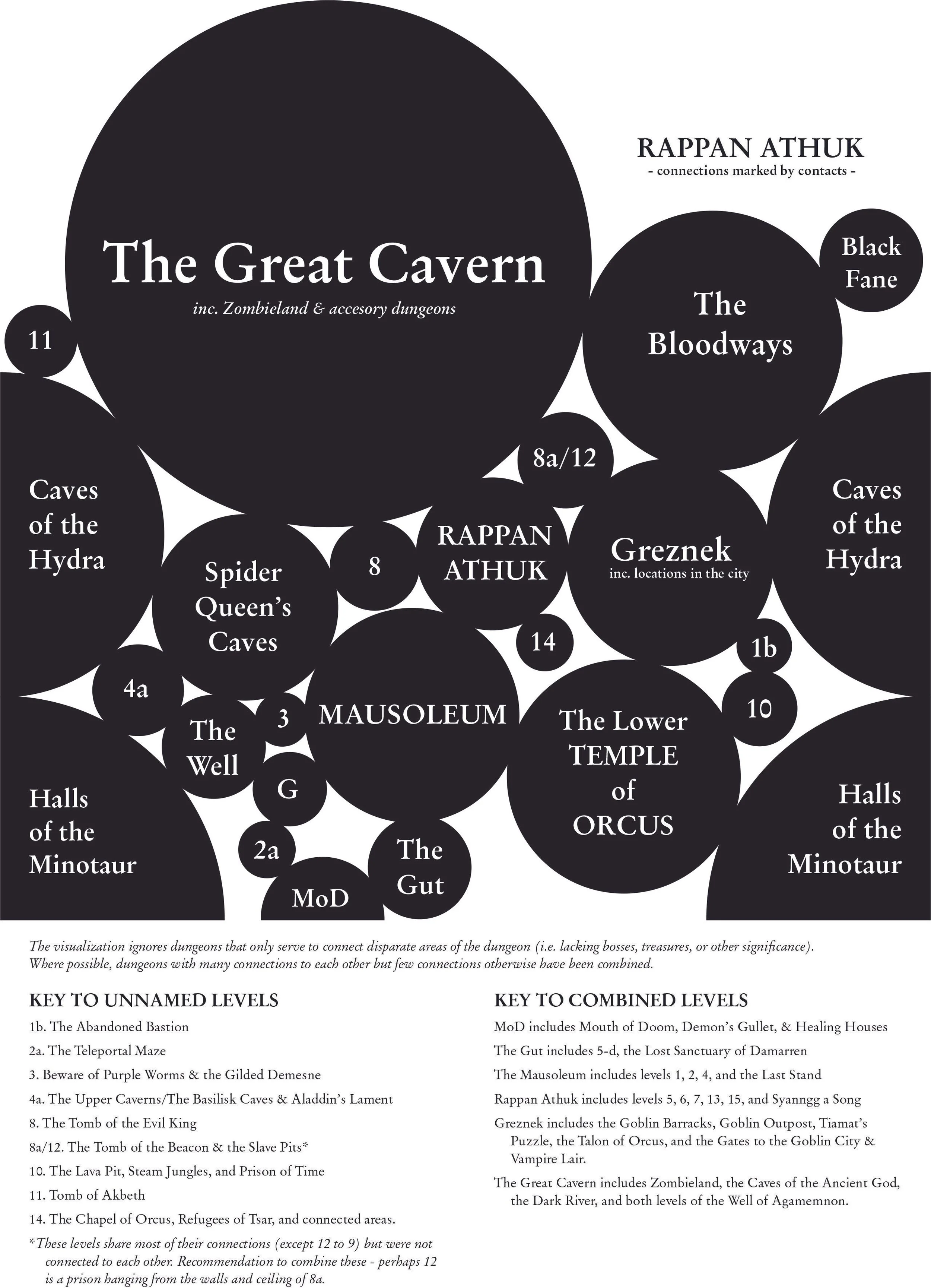 Rappan Athuk was my first megadungeon campaign (from 2020 to 2025), but the first time someone rolled a random ‘Find the Path’ scroll as treasure, I realized I needed a better understanding of the connections between the dozens of dungeon levels presented in the volume.